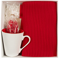 Набор подарочный COSINESS: плед, ежедневник, ручка, чайная пара, коробка, красный