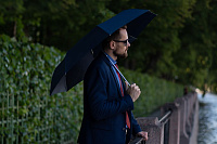 Зонт PRESTON складной с ручкой-фонариком, полуавтомат; черный; D=100 см; 100% полиэстер