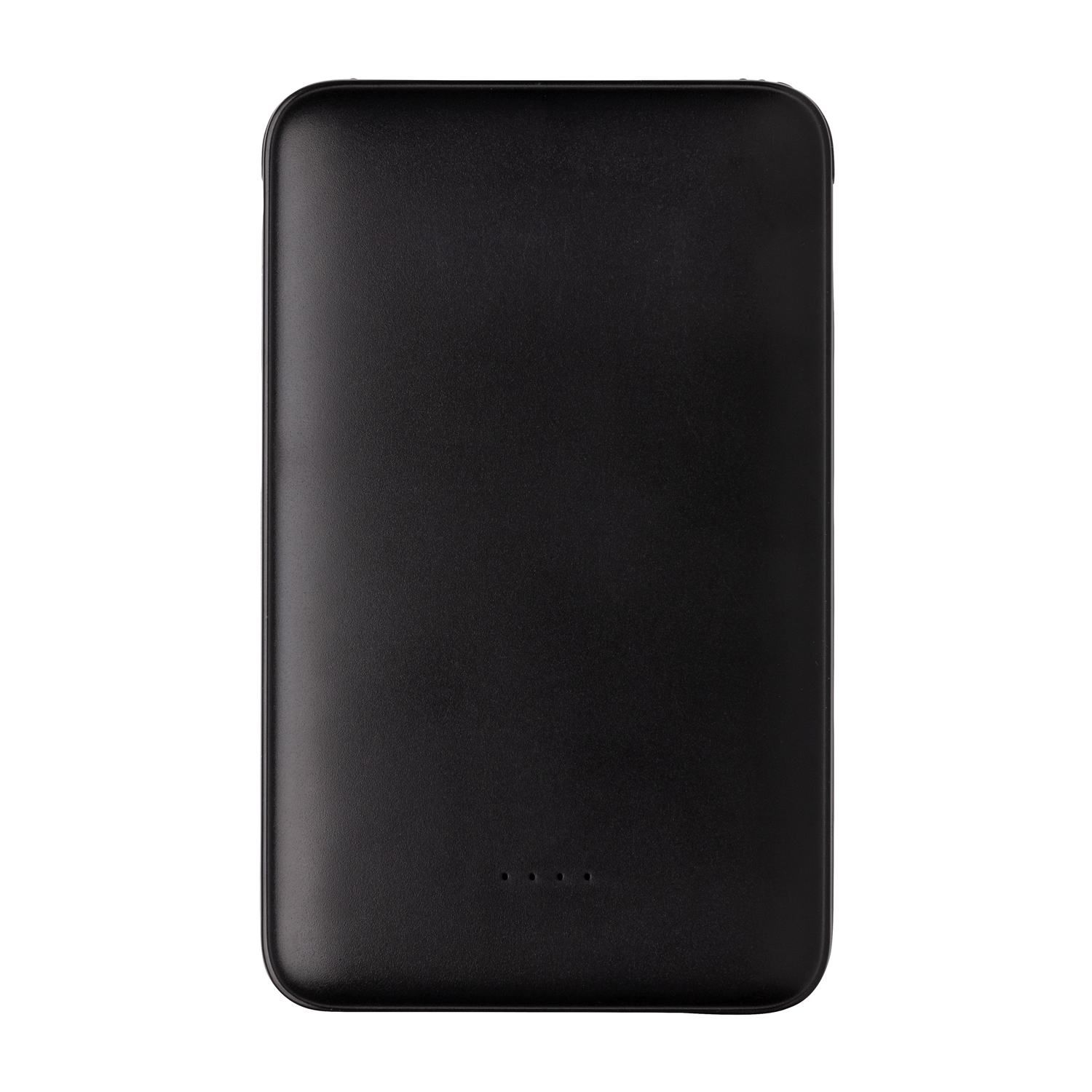 Этот компактный пауэрбанк с приятным на ощупь матовым корпусом из ABS легко носить с собой.  Емкость аккумулятора составляет 5000 мАч. В корпус устройства встроены TPE кабели с разъемом Type C и комбинированным разъемом для устройств на платформе iOS и на платформе Android (micro USB). Энергии полностью заряженного литий-полимерного аккумулятора высокой плотности хватит, чтобы зарядить ваш смартфон до двух раз.  Удобные световые индикаторы отображают уровень заряда, напоминая о необходимости подзарядить устройство.  Напряжение на входе и на выходе: 5V/2A.