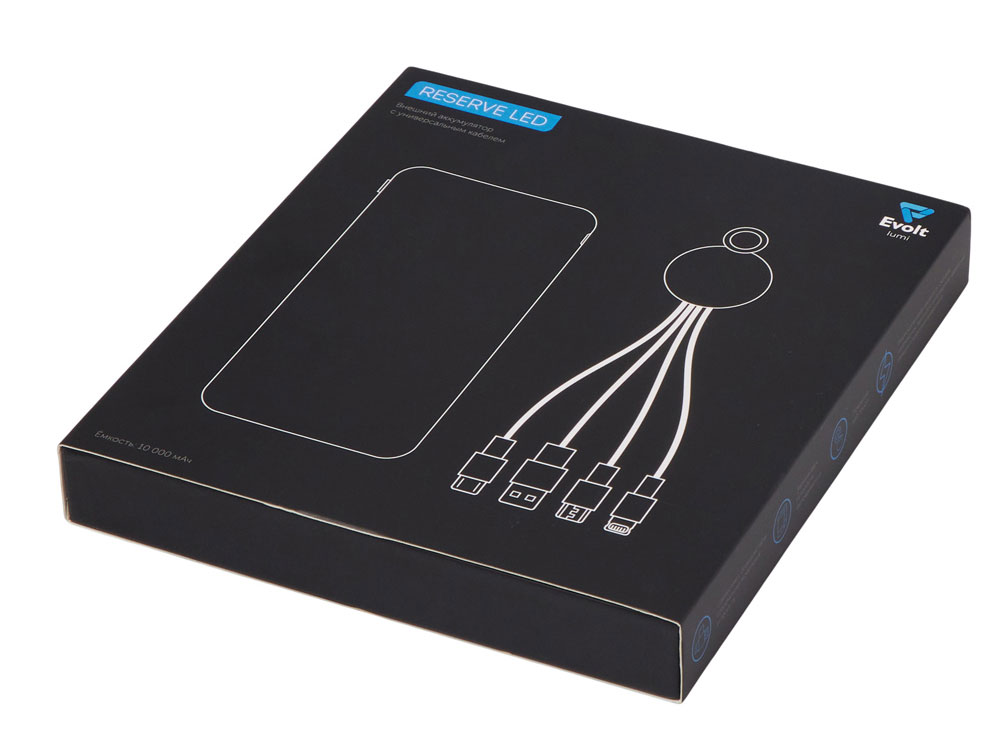 Набор из внешнего аккумулятора и универсального кабеля с подсветкой лого Reserve LED, 10000mAh