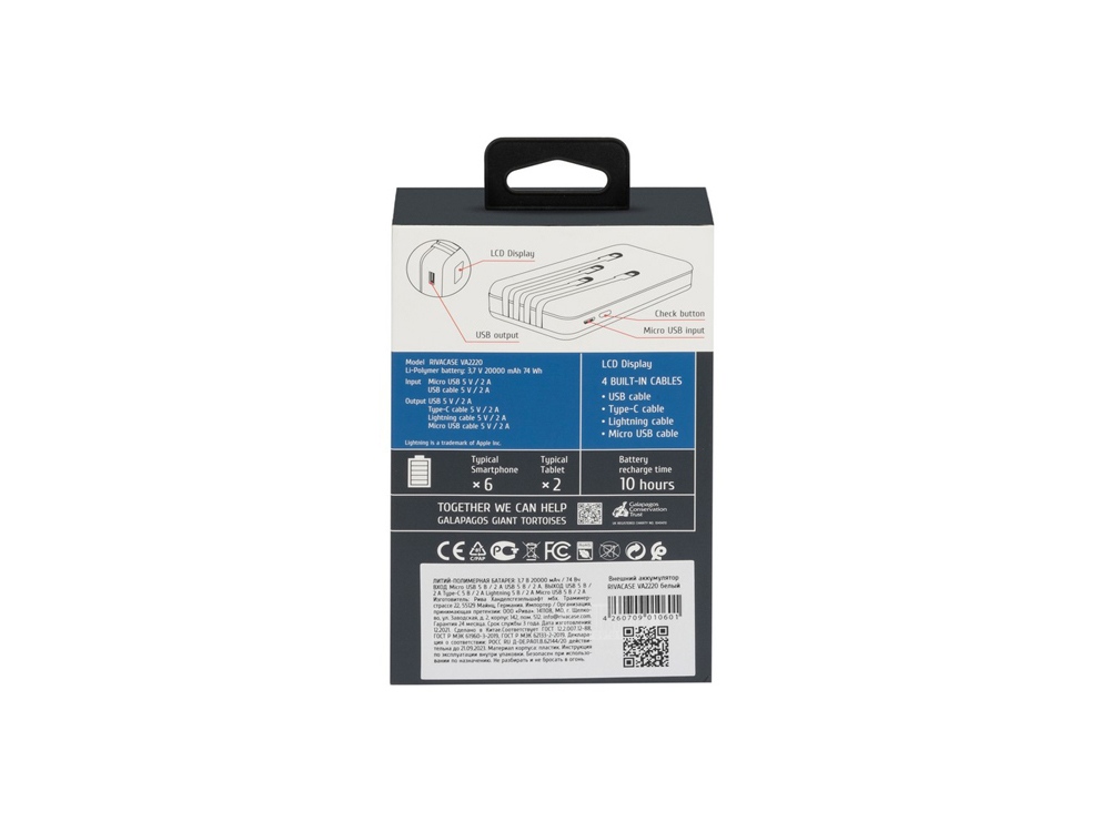 Внешний аккумулятор с дисплеем и встроенными кабелями VA2220, 20000 mAh