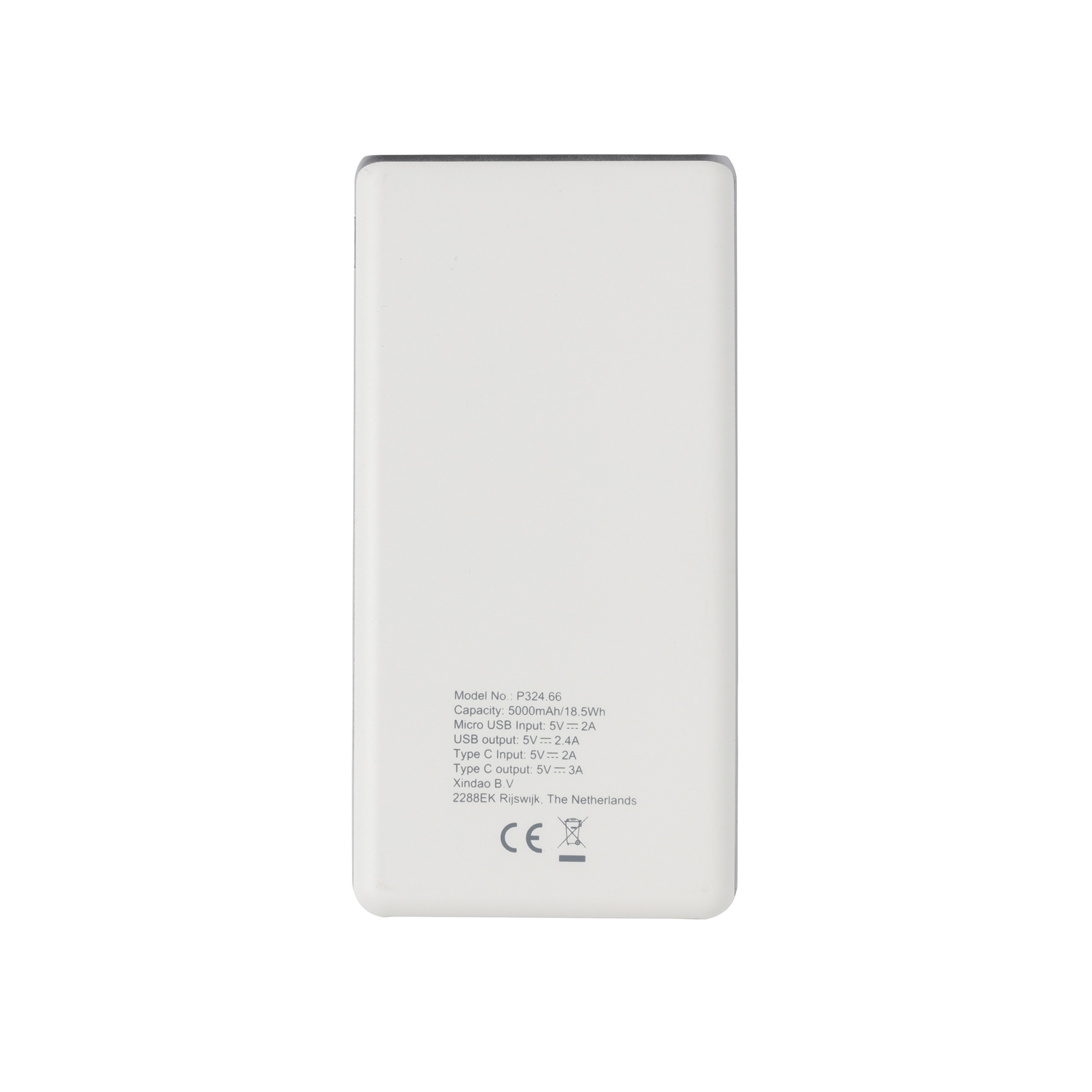 Стильный внешний аккумулятор емкостью 5000 мАч с быстрой зарядкой, доступной на рынке. Изготовлен из прочного пластика ABS. Предусмотренные разъемы - Type C и стандартный USB-порт. Вход Micro USB: 5V / 2A; USB-выход: 5V / 2.4A. Вход Type C: 5V / 2A. Выход Type C: 5V / 3A.