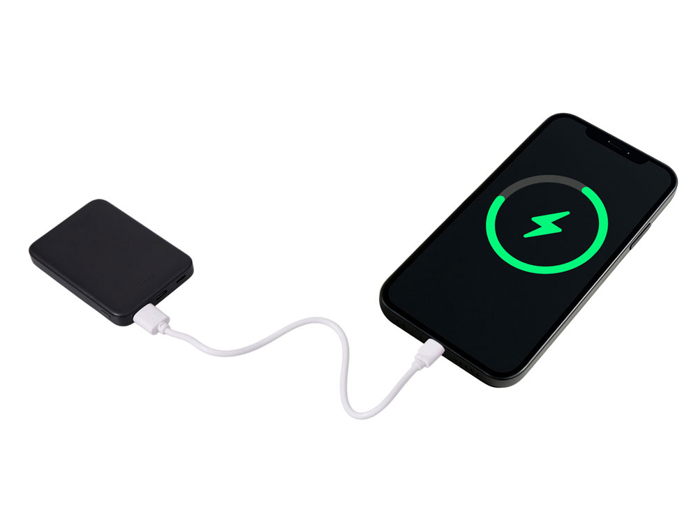 Стильный, тонкий и практичный — этот 5000 мАч повербанк создан для тех, кто ценит мобильность и универсальность. Идеальный корпоративный подарок для клиентов, партнёров и сотрудников, которые всегда в движении! Совместим со всеми смартфонами, имеется двунаправленный USB-C и дополнительное удобство - входной разъем Lightning. Разъемы USB-C и USB-A обеспечивают одновременную зарядку двух устройств. Благодаря мини размерам 91.5*62* мм и лёгкому весу (всего 102 г) легко помещается даже в карман рубашки или кошелёк. Лаконичная матовая поверхность выгодно подчеркнет логотип, а надёжная система защиты гарантирует безопасность при каждой зарядке. Поставляется в продуманной выдвижной упаковке с быстрым и эффектным открытием.