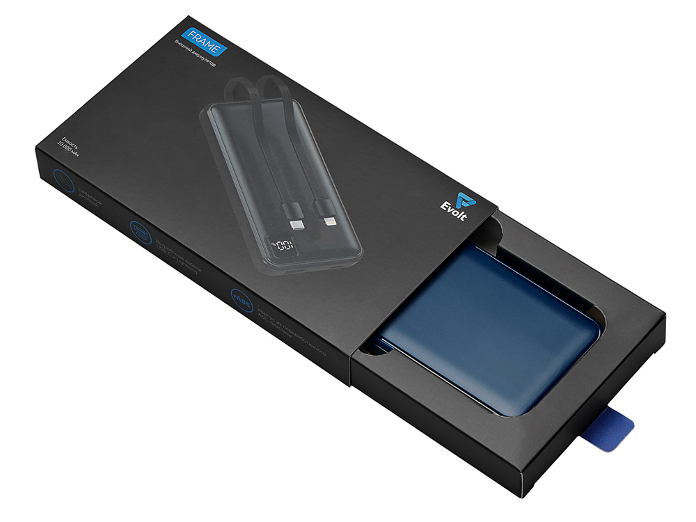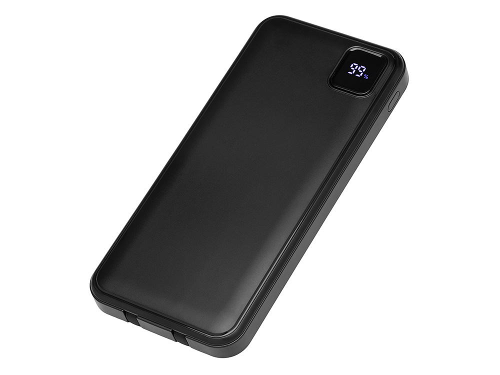 Удобный внешний аккумулятор с встроенными кабелями USB-C и Lightning — ваш надежный партнер в путешествиях, на встречах и в повседневных задачах. Цифровой дисплей в реальном времени показывает точный остаток заряда, а компактные габариты делают его таким же удобным, как смартфон. Прочный корпус из переработанного АБС-пластика и емкость 10000 мАч обеспечивают долгую работу даже при интенсивном использовании. Идеальный выбор для тех, кто ценит комфорт и функциональность в одном устройстве. Продуманная упаковка: для открытия просто потяните за язычок, и появится гаджет с нанесением.