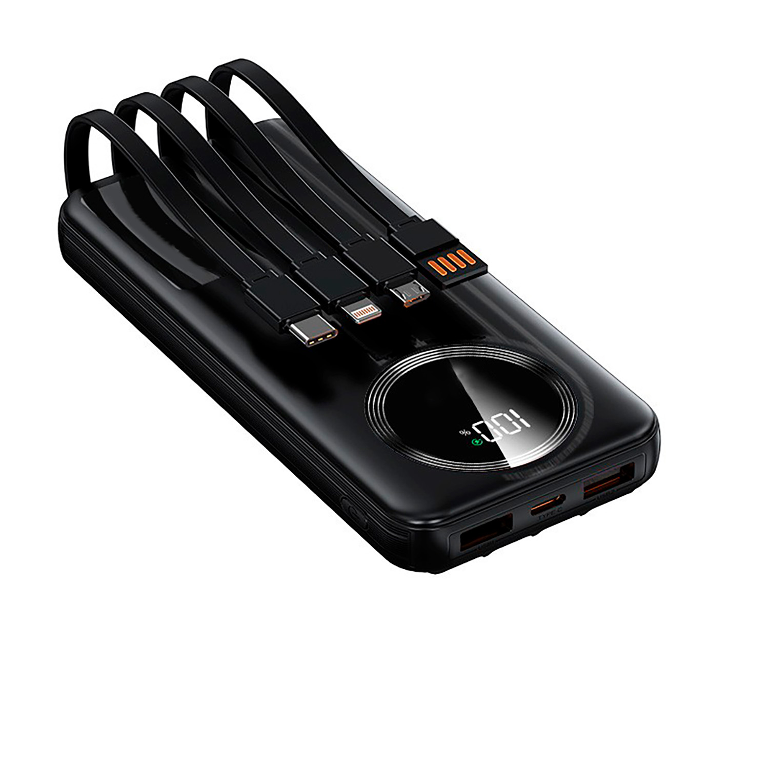 Зарядное устройство "Phantom" 10000 mAh с 4мя встроенными кабелями и цифровым индикатором заряда