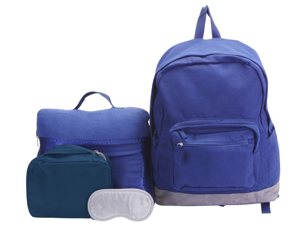 Отличное предложение для тех, кто собрался в путешествие! Рюкзак вмещает до 8 кг и прекрасно подойдет для ручной клади. Пледом можно укрыться в полете или использовать как подушку в пути или в случае длительного ожидания рейса. А чтобы сон был комфортным, воспользуйтесь маской на глаза, которую можно хранить вместе другими необходимыми для путешествия мелочами в удобном несессере. Такой набор обеспечит вам комфорт в пути и удобство в поездке на любом виде транспорта! -