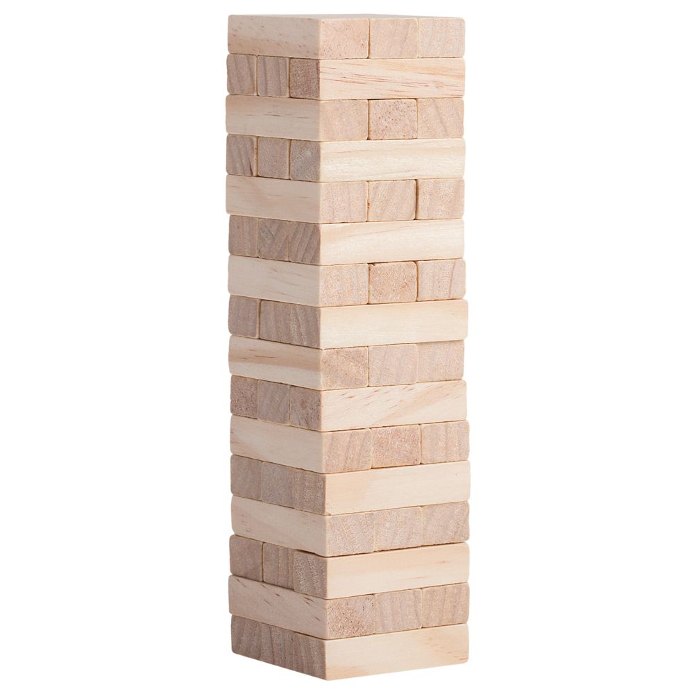 Второе название игры — «Падающая башня». Сначала строится башня: по три брусочка в ряд, каждый слой перпендикулярен предыдущему. Затем игроки по очереди вытаскивают по одному брусочку и кладут его на верх сооружения. Тот игрок, кто обрушит башню, проиграл. Игра тренирует ловкость, внимание, терпение и пространственное мышление, что очень важно и в бизнесе. Так что подарок не только развлечет, но и может стать символом-пожеланием.