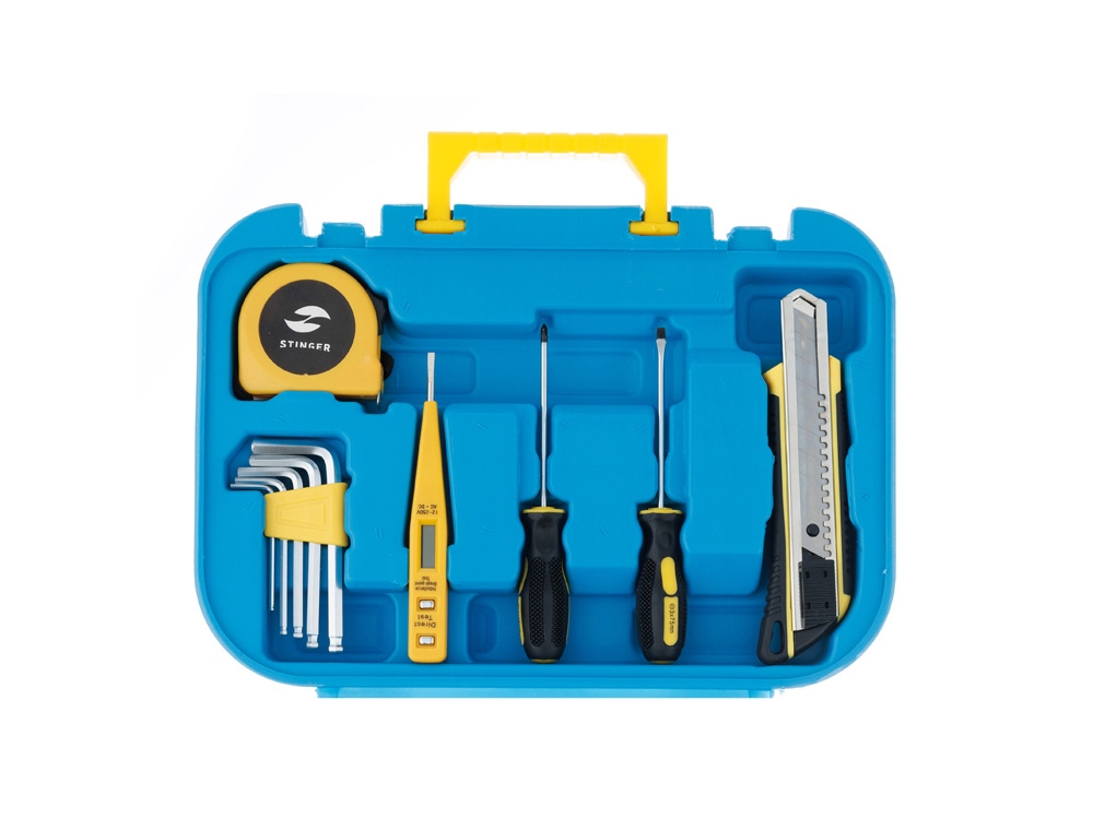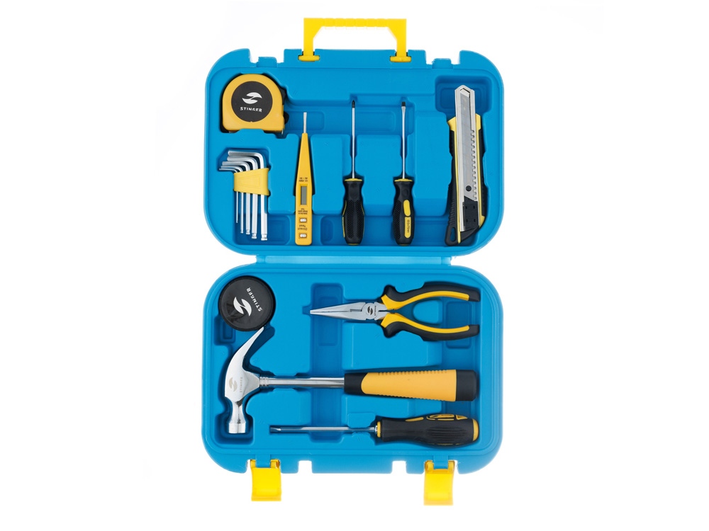 Набор инструментов STINGER NST028016 на 15 предметов – идеальный подарок для мужчины. В компактном пластиковом кейсе поместилось всё, что может потребоваться в быту. Все компоненты выполнены из высококачественной закаленной углеродистой стали с хромированным покрытием. Эргономичная пластиковая ручка обеспечивает устойчивое положение в руке. Кейс размером 290 х 75 x 205 мм не занимает много места. Его можно разместить на полке, в шкафу, в машине или гараже.