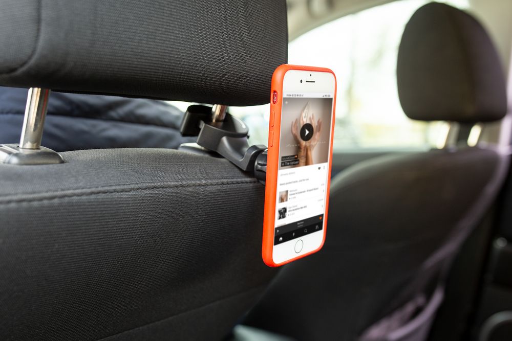Держатель с помощью крюка крепится на подголовник.В комплекте две металлические пластины, которые можно приклеить с помощью двухстороннего скотча (в комплекте) или вложить под заднюю крышку или чехол, чтобы не портить внешний вид телефона.