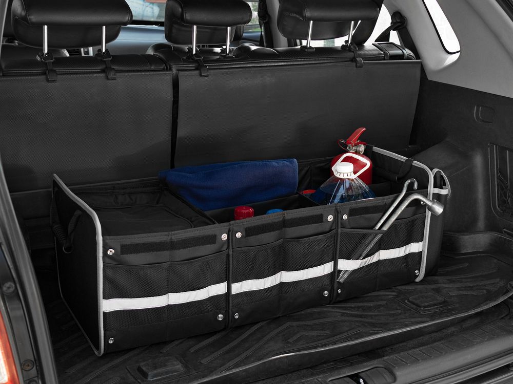 Органайзер состоит из трех основных отсеков, бокового кармана с клапаном и фронтальных карманов из сетки, что позволяет удобно хранить самые разные предметы: бутылки, сумки, инструменты, продукты и аксессуары. Также в комплект входит сумка-холодильник с водонепроницаемой подкладкой, которую можно вставить в одно из отделений, использовать отдельно, а когда она не нужна, сложить и убрать в боковой карман органайзера.- Три отделениям со съемной крышкой