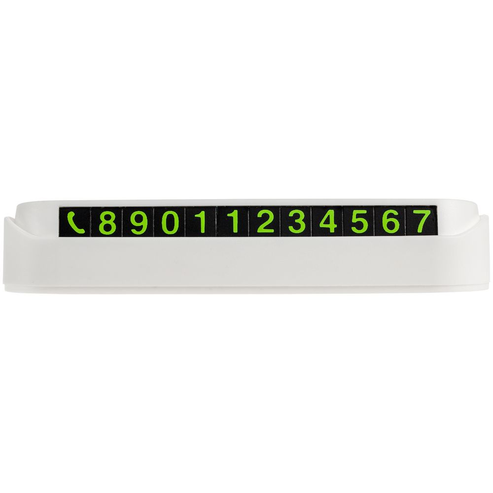 В наборе подставка с клейким основанием и комплект магнитных символов — при изменении номера телефона данные на визитке легко скорректировать.