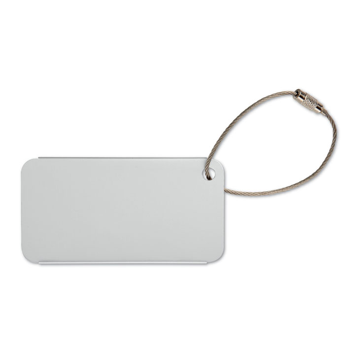 Алюминиевая багажная бирка. Поставляется с металлическим тросиком и винтовым соединителем. -