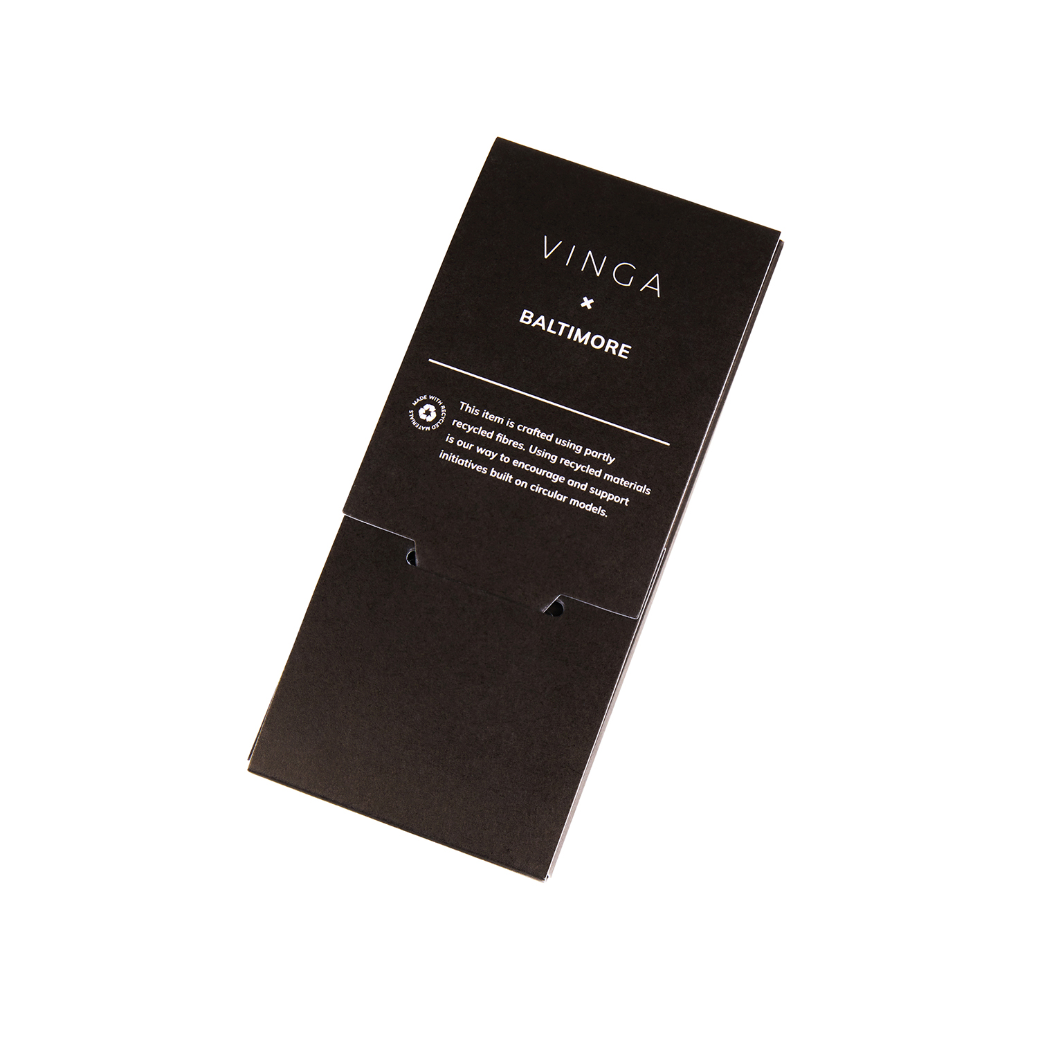 Минималистичная и стильная бирка для багажа Baltimore от VINGA — ничего лишнего! Она идеально подходит для подарка тем, кто часто отправляется в деловые поездки, командировки или путешествия. Ее можно прикрепить к любому типу багажа при помощи петли, а этикетка с адресом поможет идентифицировать чемодан, если вы его потеряете. Бирка изготовлена из переработанного полиэстера, а строчка по краям делает ее долговечной и прочной. Сертифицировано RCS. Эта сертификация полностью контролирует путь поставок переработанных материалов и гарантирует их наличие в изделии.