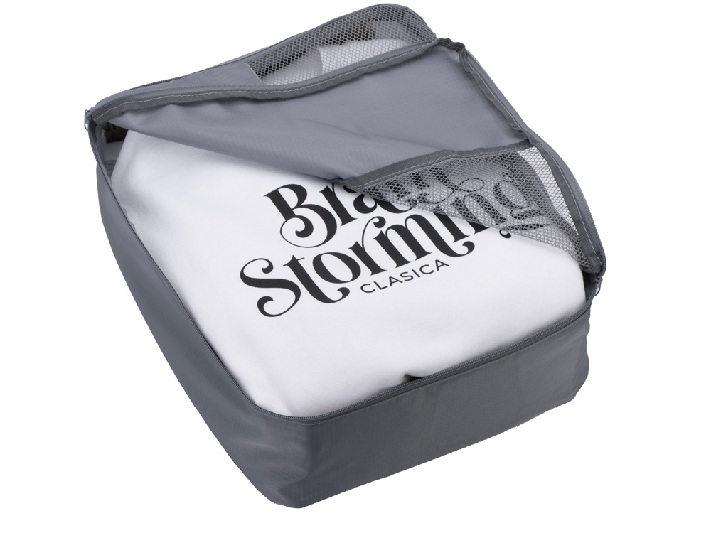 - сетчатая вставка позволит увидеть содержимое, а удобная ручка - вытащить органайзер из чемодана или ручной клади