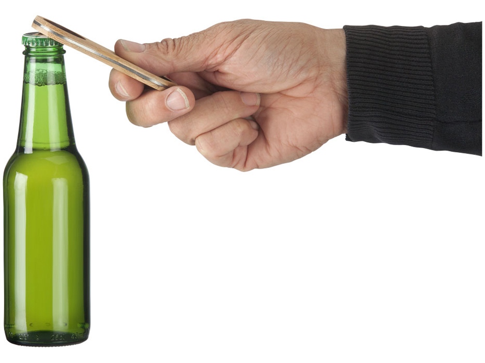 Бамбуковая открывалка для бутылок Barron. Открывалка для бутылок, изготовленная из прочного бамбукового материала с логотипом по середине. Бамбук и нержавеющая сталь. -