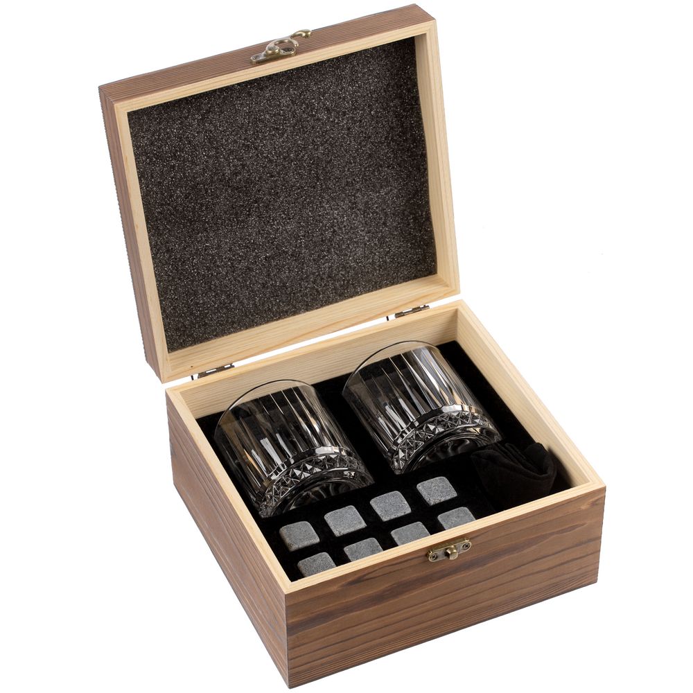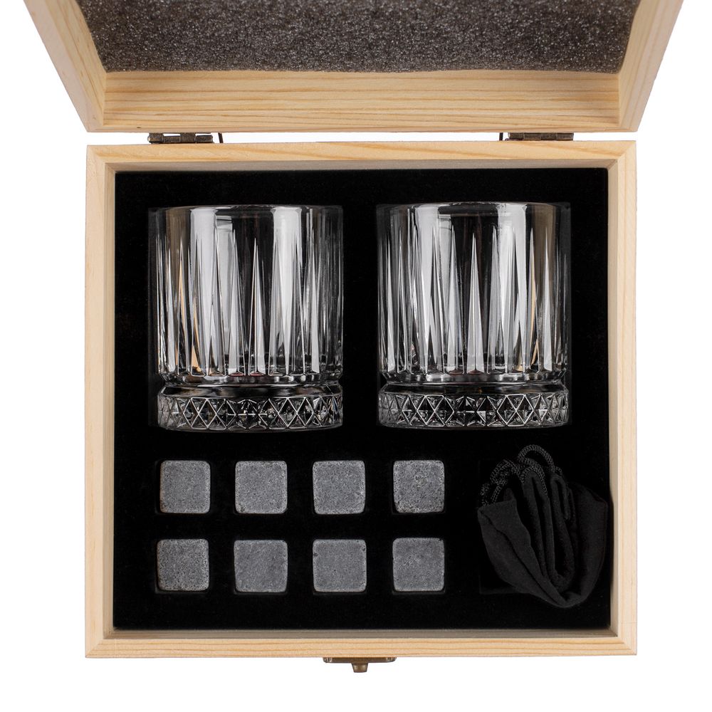 Набор Rock and Cold — стильный подарок для ценителей виски: два рельефных стакана с толстым дном и охлаждающие камни для идеальной подачи любимого крепкого напитка.