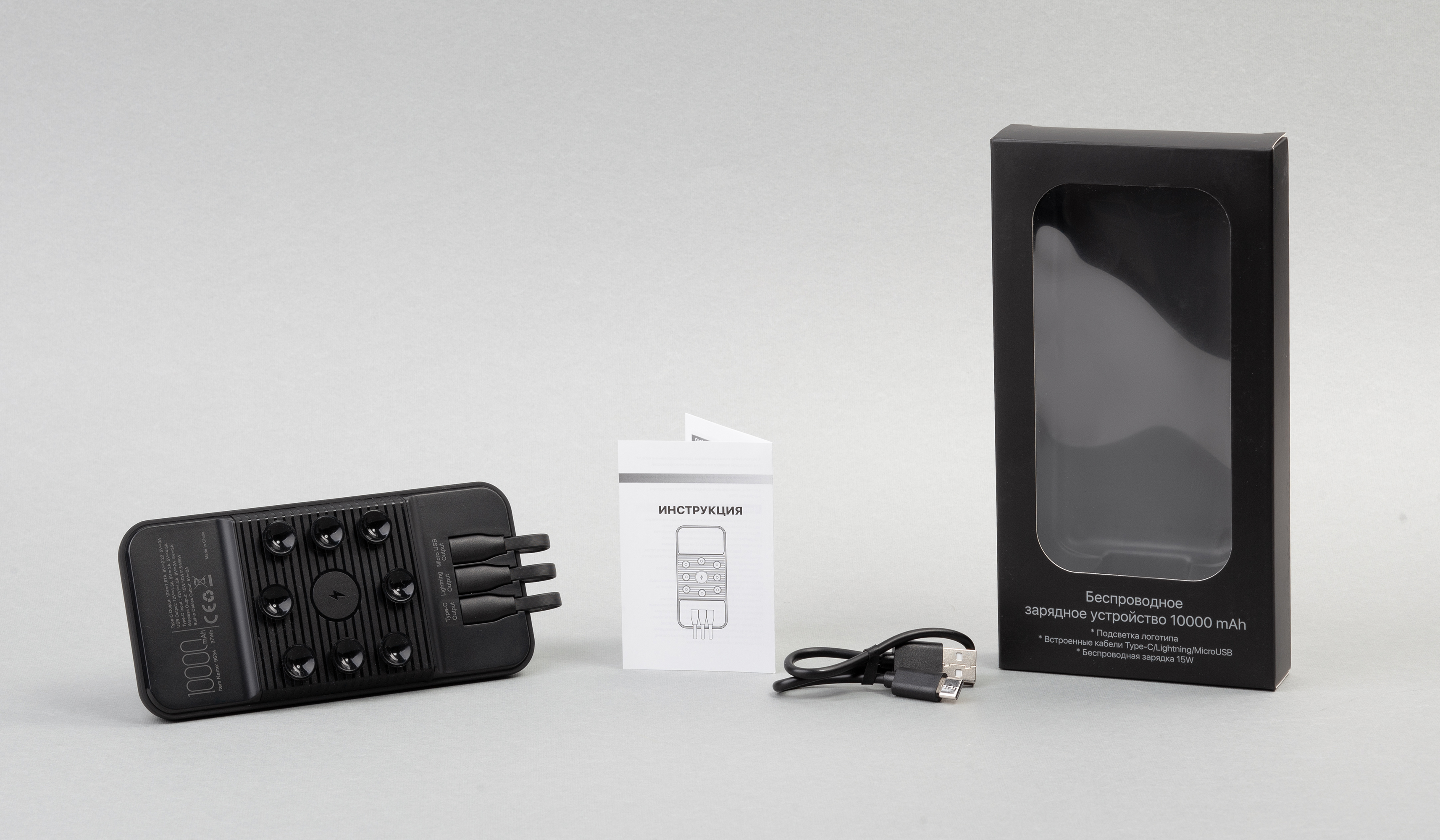 Беспроводное зарядное (22.5/15W) устройство "Topfull SOFTTOUCH" 10000 mAh с подсветкой лого, присосками, встроенными кабелями, с подставкой