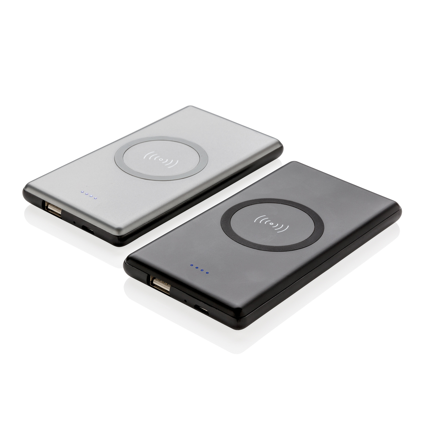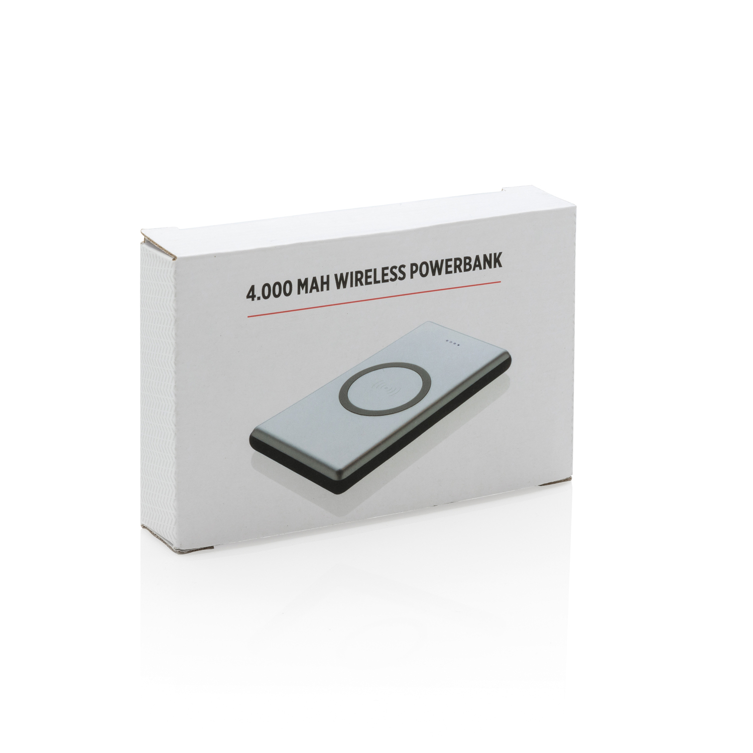 Беспроводной внешний аккумулятор емкостью 4 000 мАч с литиевой батареей высокого качества. Кнопка включения / выключения и индикатор оставшегося заряда. Аккумулятор имеет встроенную функцию беспроводной зарядки 5W для заряда вашего мобильного телефона без использования кабеля. Совместим со всеми устройствами, поддерживающими технологию QI, такими как Android последнего поколения, iPhone 8, 8S и X. Выход USB: 5V / 2.1A. Вход: 5V / 1.5A. Беспроводной выход: 5V / 1A 5W. В комплекте кабель micro USB.