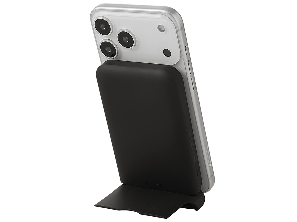 - Встроенная подставка — удобно смотреть видео, принимать звонки или работать, пока телефон заряжается.