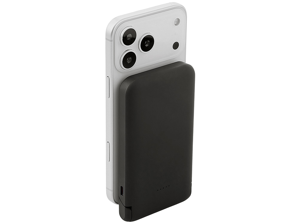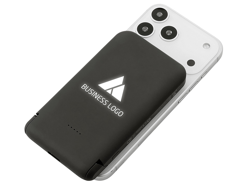 Беспроводной внешний аккумулятор Magflash — это не просто запас энергии, а стильный и умный аксессуар для современного ритма жизни. С ёмкостью 10000 мАч и быстрой зарядкой он надежно обеспечивает энергией смартфоны и современные гаджеты USB-C, обеспечивая до нескольких полных циклов зарядки. Поддержка беспроводной зарядки мощностью 15 Вт позволяет быстро восполнять энергию без проводов — просто положите устройство на поверхность, к iPhone аккумулятор примагнитится, что значительно облегчает его использование. Встроенный держатель-подставка позволяет комфортно разместить смартфон для просмотра видео или управления одной рукой. А светодиодная подсветка логотипа создаёт атмосферу — работает как индикатор заряда и стильный акцент вашего бренда.