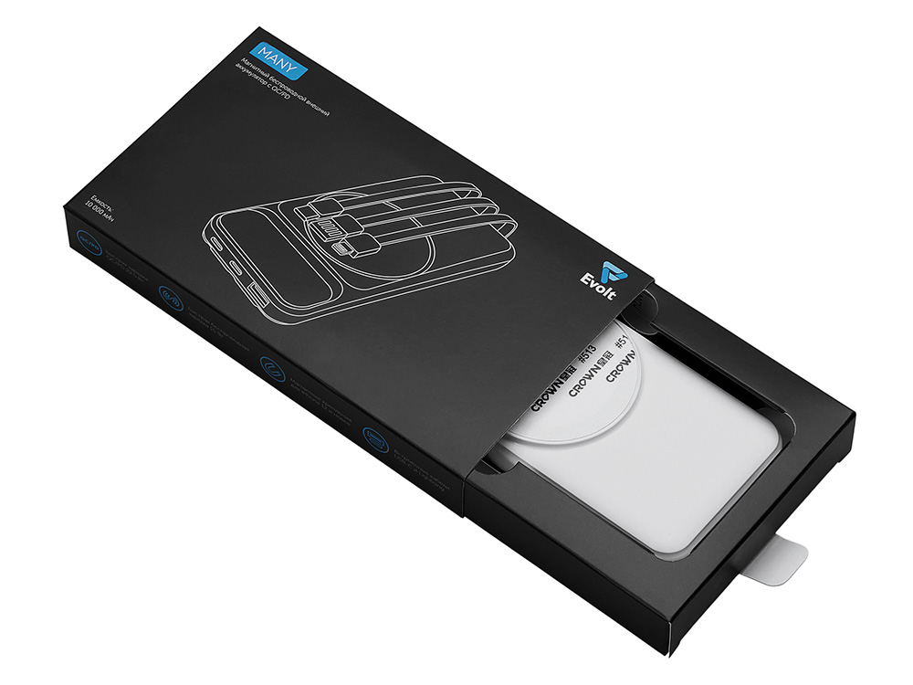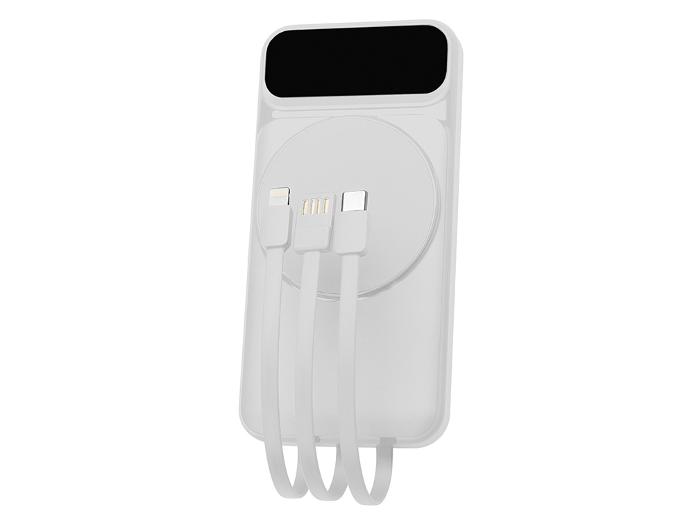 Магнитный беспроводной внешний аккумулятор со встроенными кабелями Мэни, 10000 мАч
