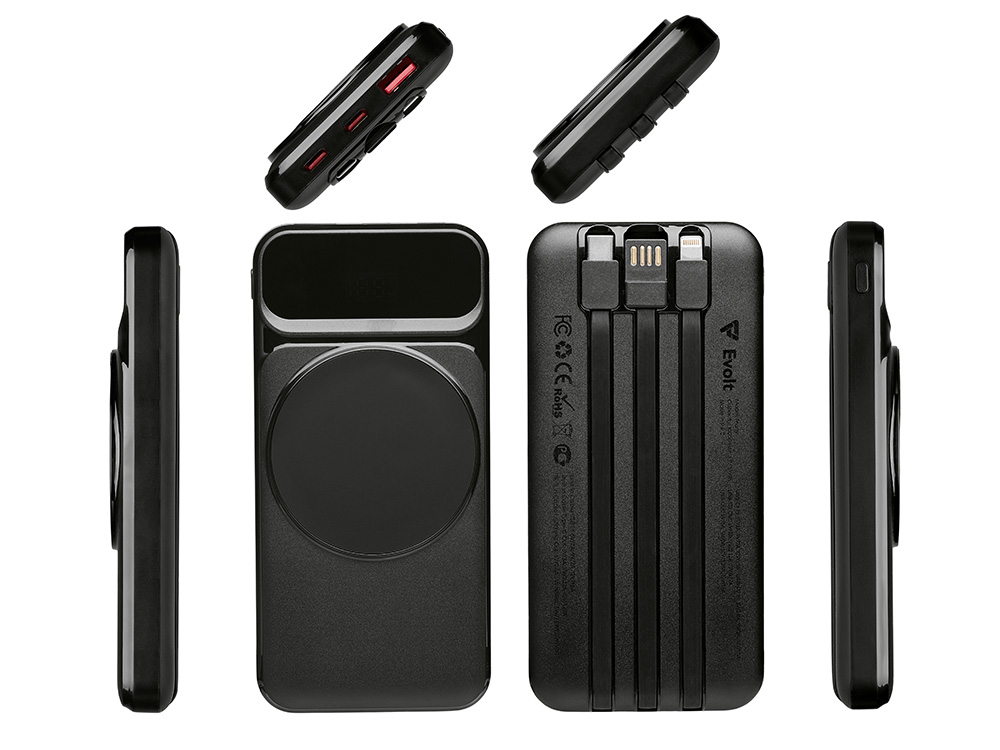 Функциональный и удобный внешний аккумулятор на 10 000 мАч обеспечивает быструю зарядку как по кабелям, так и беспроводным способом, поддерживая современные стандарты скорости. Цифровой дисплей на верхней панели мгновенно показывает точный уровень заряда, а встроенные кабели Lightning, USB-C и входной USB-A устраняют необходимость в дополнительных проводах — всё, что нужно для каждодневного использования, уже есть в самом гаджете. Компактные габариты, сопоставимые с размером смартфона, делают устройство идеальным для путешествий и повседневного использования. Сильные магниты гарантируют надёжное крепление при беспроводной зарядке. В комплекте есть силиконовая накладка: перед использованием удалите защитный стикер и прикрепите её к корпусу.