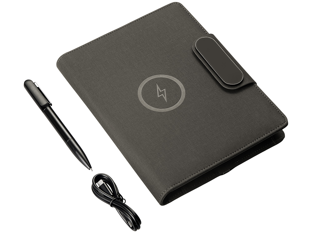 Подарочный набор Twilight: органайзер А5 с беспроводной зарядкой и металлическая шариковая ручка со светящимся логотипом