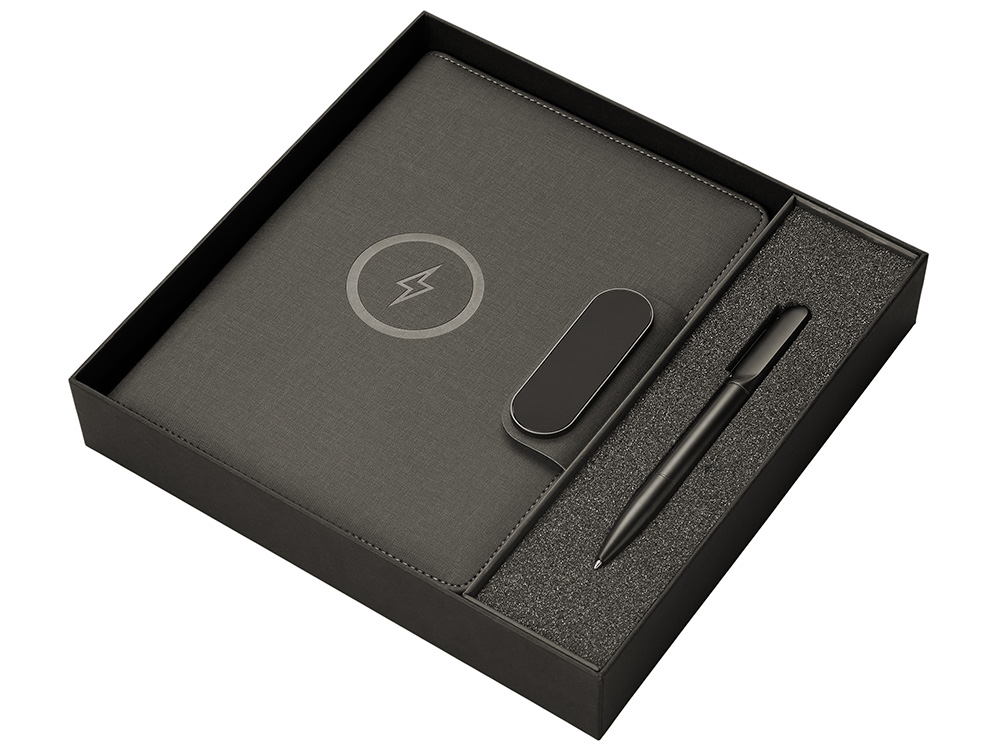 Подарочный набор Twilight — стильный и современный бизнес-подарок, который в полной мере воплощает идею многофункциональности. Он состоит из органайзера формата А5, с помощью которого можно заряжать гаджеты как беспроводным способом, так и через кабель, фиксировать телефон для просмотра видео или проведения конференций, хранить ручку и делать записи, а также самой металлической ручки. Клапан органайзера и в верхняя часть ручки светятся при гравировке логотипа, что делает набор стильным, а лого более ярким и заметным. Практичный и технологичный аксессуар, который в состоянии заменить сразу несколько вещей.
