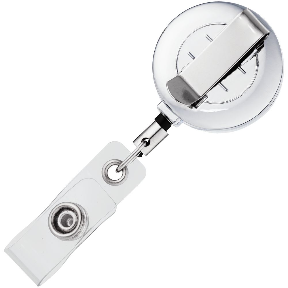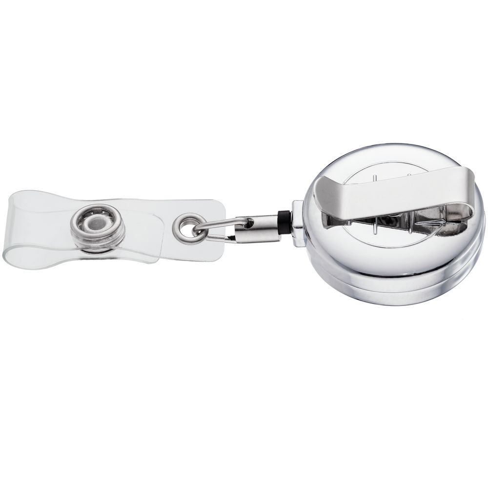 Ретрактор крепится к одежде, а с другой стороны можно поместить бейдж, визитку или магнитную карту. В корпусе спрятан сворачивающийся шнур, который позволяет при необходимости демонстрировать содержимое держателя, не снимая его. -