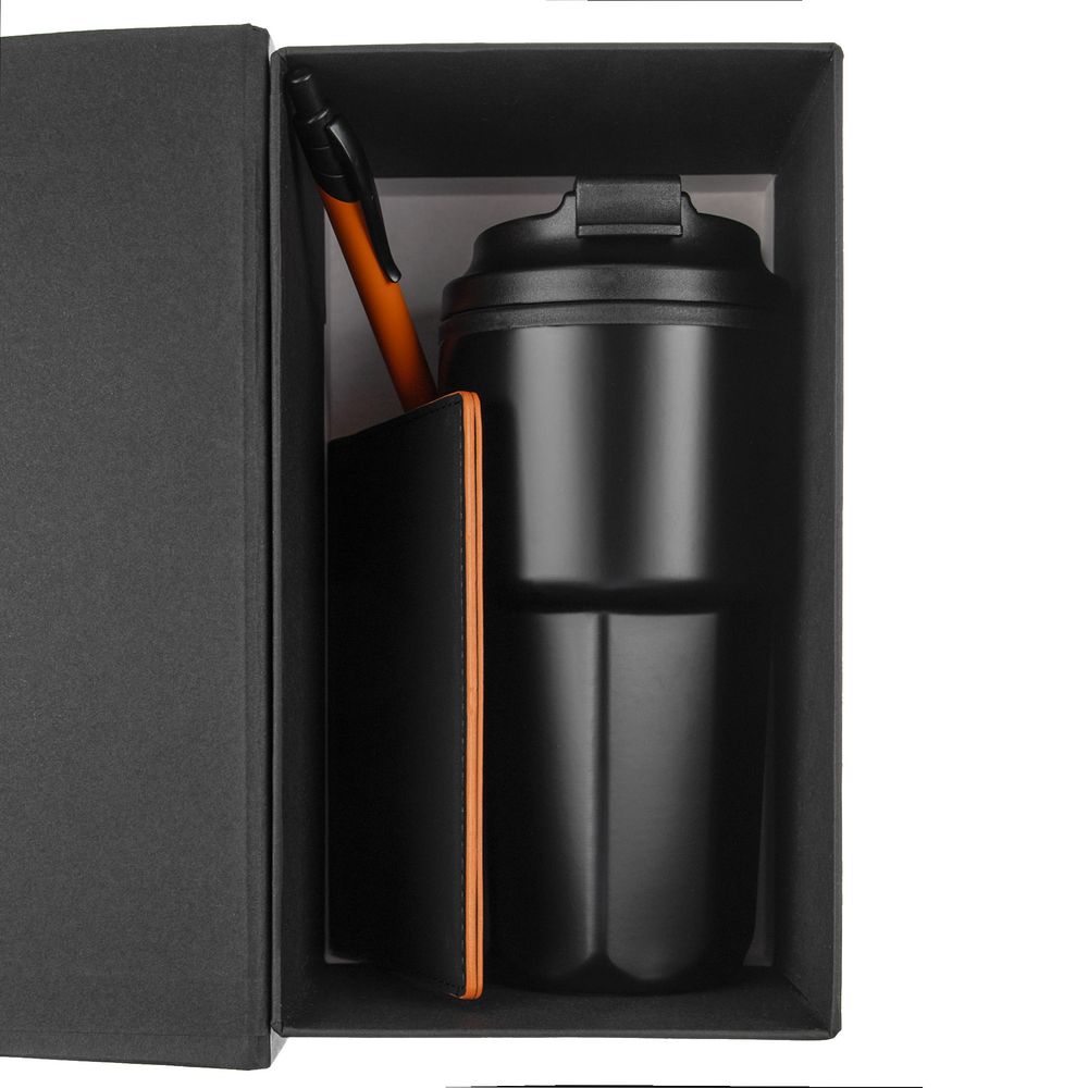 термостакан - нержавеющая сталь; полипропилен; обложка для паспорта - искусственная кожа; ручка - металл; пластик; коробка - переплетный картон