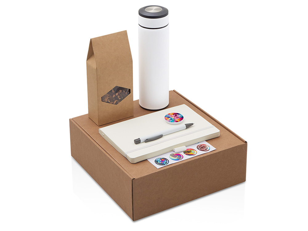 Дополнительное преимущество — набор доступен в конструкторе наборов: компоненты можно заменить и собрать индивидуальный вариант под стиль компании или вкусы получателя.