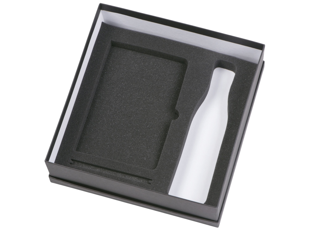 блокнот - искусственная кожа с покрытием софт-тач, ручка - алюминий с покрытием софт-тач, термобутылка - нержавеющая cталь с покрытием софт-тач, коробка - картон