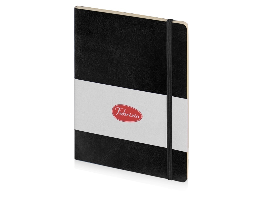 Гибкая обложка блокнота выполнена из искусственной кожи, блок блокнота - кремового цвета и оснащён резинкой в тон обложки.