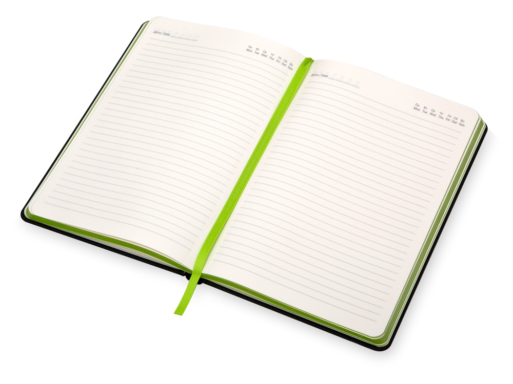 • Наличие резинки, петли для ручки на корешке и ляссе