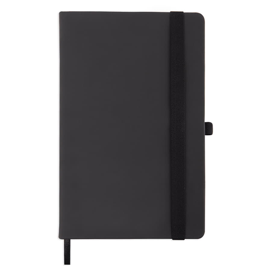 Самый популярный блокнот в твердой обложке, с эластичной резинкой, пенхолдером и ляссе в тон.Термоактивный классический PU материал Silk PlusЦвет обложки, близкий к Pantone Black CВнутренний блок 256 страниц в линейкуИдеально скругленные углы блокаПерфорированные 8 последних листовКремовая FSC бумага 70г м2Карман для мелочейИндивидуальная упаковка: прозрачный сливбокс -