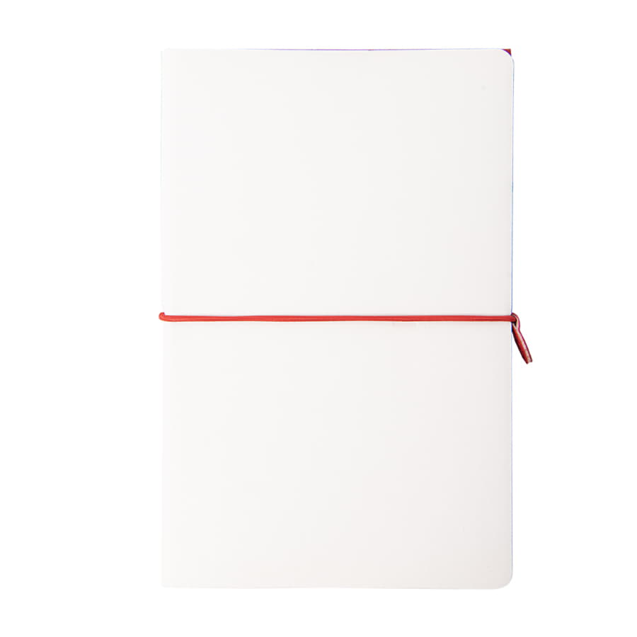 COMBI – Размер блокнота 130*210 мм- два направления открытия блокнота: с лицевой стороны – традиционное горизонтальное раскрытие, с оборотной стороны – вертикальное раскрытие, а-ля блокнот «reporter».- два разных материала обложки: с лицевой стороны – имитирующий настоящую кожу PU Shevret (цвет - белый),с оборотной стороны - яркий PU Silk Plus (цвет, близкий к pantone 200C). - два разных внутренних блока по 96 страниц соединены под одной обложкой:первый блок - в клетку, второй – нелинованный c перфорацией.Гибкий переплет. Горизонтальная резинка с PU клипом с функцией пенхолдераИдеально скругленные углы блока. Кремовая eco-friendly эвкалиптовая FSC бумага 70 г м2. -