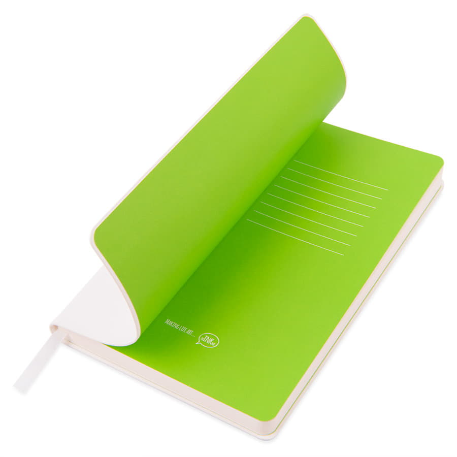 Блокнот с мягкой термоактивной обложкой и популярной комбинацией цветовТермоактивный PU материал VelvetЦвет обложки белыйЦвет форзаца, близкий к Pantone 2292UВнутренний блок 256 страниц в точкуИдеально скругленные углы блокаПерфорированные 8 последних листов Кремовая FSC бумага 70 г м2Ляссе в тон обложкиИндивидуальная упаковка: фирменный сливбокс thINKme -