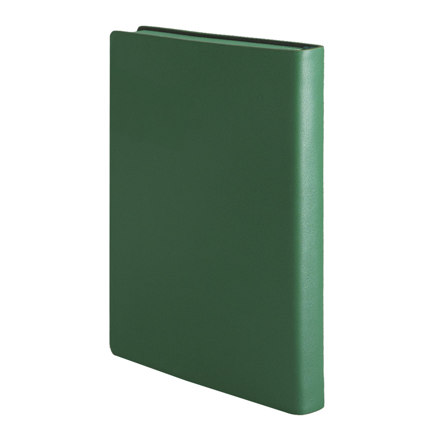 Бизнес-блокнот LADYЦвет обложки зеленый, близкий к Pantone 343CРазмер 150*210 мм, переплет мягкийОбложка - не термоактивный PU с эффектом кожи наппаБлок в клетку, скругленные углыСрез в цвет обложкиБумага кремовая, плотность 70 г м2Форзац нахцаз серый, близкий к Pantone 5 U Cool grey256 стр, перфорация на последних страницахЛяссе, 7 мм, в цвет обложкиУпаковка сливбокс + бумага -