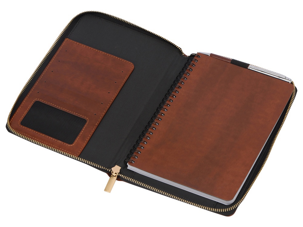 Бизнес блокнот Fabrizio состоит из пенала на молнии выполненного из искусственной кожи, и сменной тетради на 80 листов на кольцах с перфорированными линованными листами белого цвета.