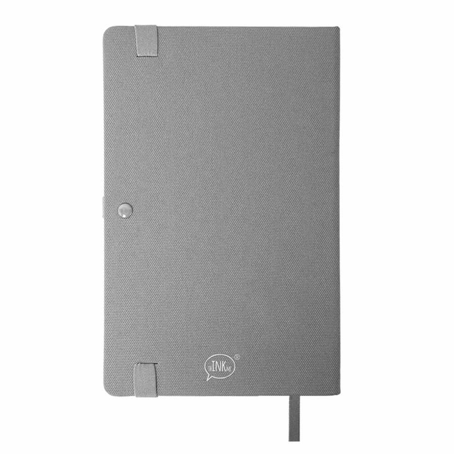100% эко-блокнот Размер: 130х210 мм Переплет: твердый Обложка: RPET рециклированный полиэстер, полученный из переработанных пластиковых бутылок Материал сертифицирован в Нидерландах по Global Ecological Standard Отделка: жаккардовая резинка 12 мм и пенхолдер в тон обложки Форзац нахзац: кремовый Блок: недатированный Разлиновка: в линейку Количество страниц: 256 Углы блока: скругленные Цвет бумаги: кремовый Плотность бумаги: 70г м2 Ляссе: в тон обложке Карман для визиток: есть Упаковка: фирменный сливбокс thINKme -