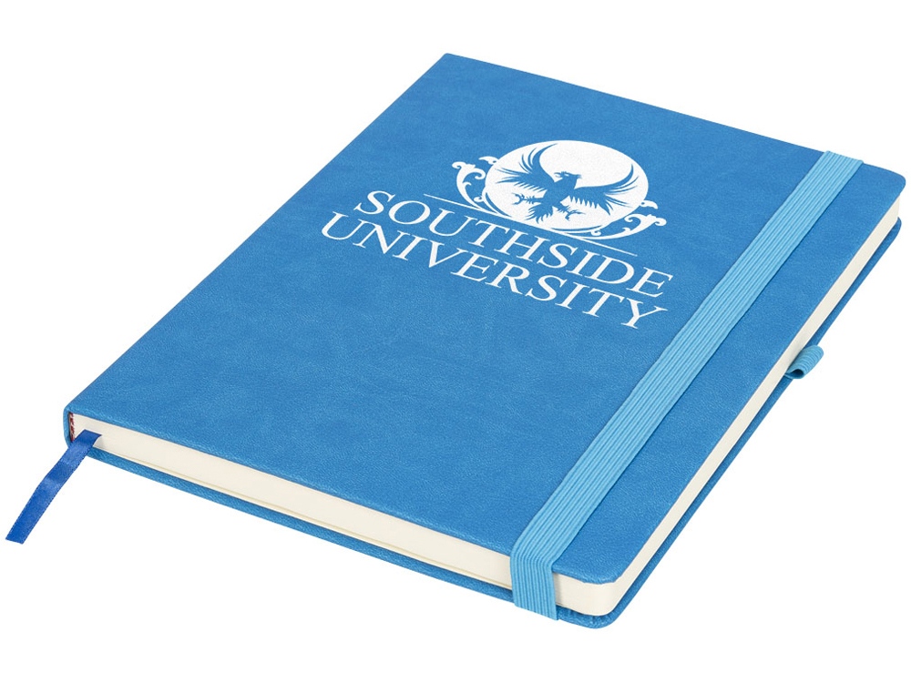 Блокнот Rivista большого размера. Блокнот Rivista отличается стильным современным дизайном с высококачественной обложкой, идеально подходящей для нанесения логотипа и информации вашей компании. Предлагаются современные цвета. Также предусмотрена эластичная застежка, держатель для ручки, лента-закладка и кармашек изнутри на задней стороне обложки. Содержит 128 листов линованной бумаги (70 г/м²) кремового цвета. ПУ. -
