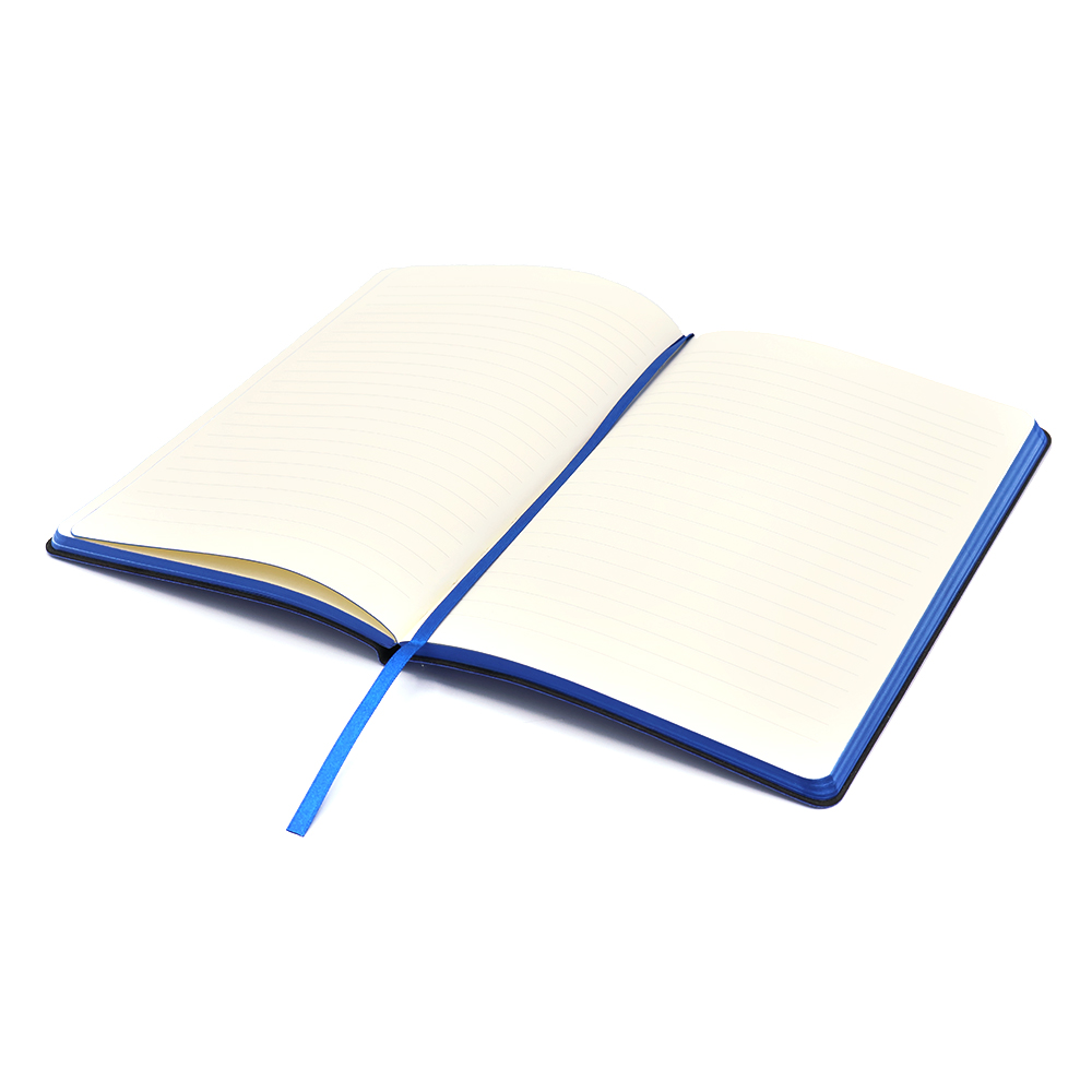 Блокнот формата А5 в мягкой обложке из искусственной кожи. Материал обложки - полиуретан. Размеры: 213*143мм, 96 листов, разлинееные страницы, бумага плотностью 70г/м2, срез прокрашен в цвет обложки. Ляссе в цвет обложки.- Виды нанесений: Гравировка А2, УФ-печать А2, Тиснение, Тиснение фольгой, УФ-Лак, УФ-Цвет+Лак