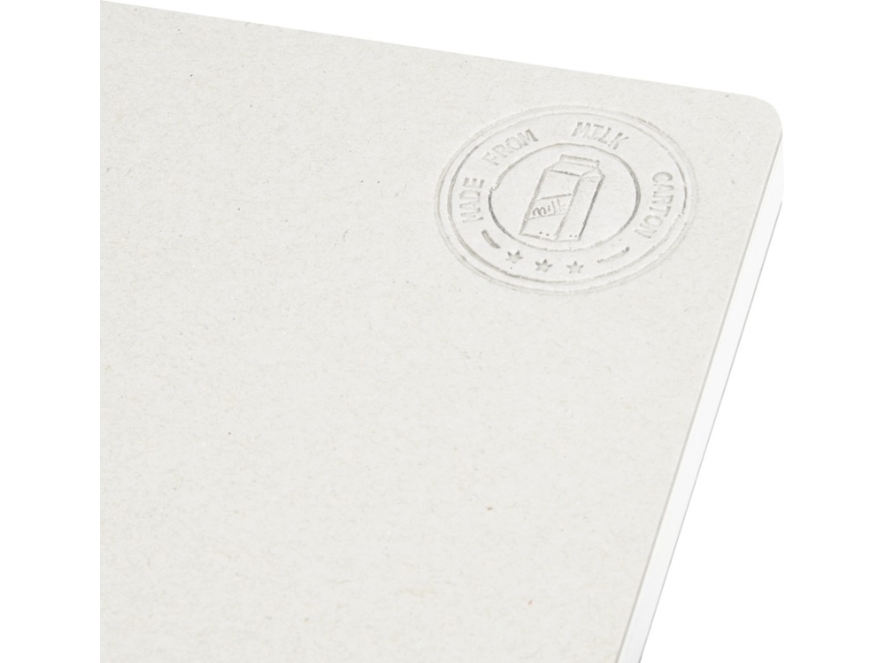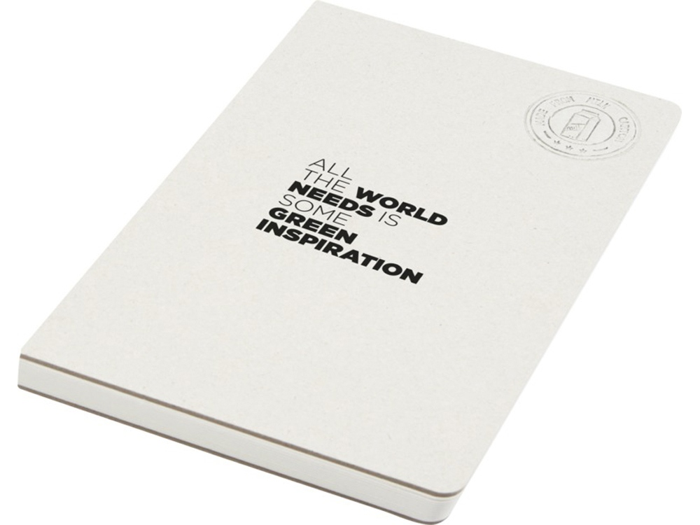 Мягкий блокнот для заметок форматом A5 с 80 линованными листами плотностью 80 г/м² из переработанных картонных коробок из-под молока (до 70%). Картонные коробки из-под молока собираются, сортируются, перерабатываются и превращаются в бумагу, таким образом действительно превращая мусор во что-то полезное.