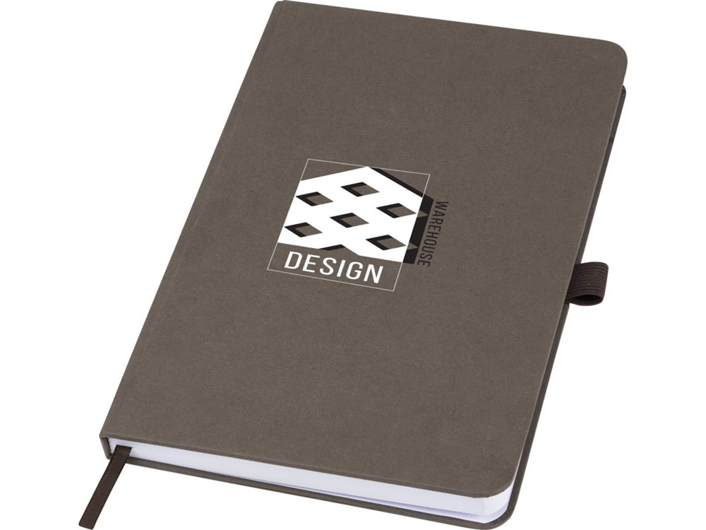 Легкий блокнот в твердой обложке для повседневных заметок с обложкой из материалов из ответственных источников. Коричневая обложка содержит остатки кофе, зеленая — остатки оливок, а белая — кукурузы. Имеет 80 листов (70 г/м²) из переработанной белой линованной бумаги.