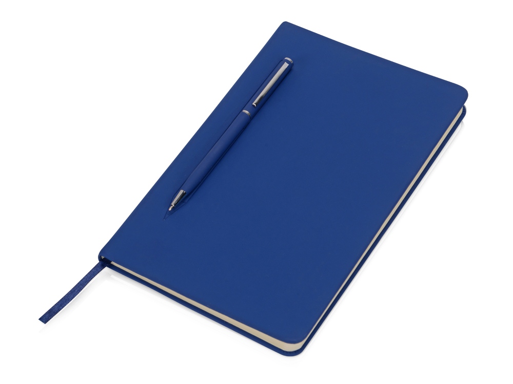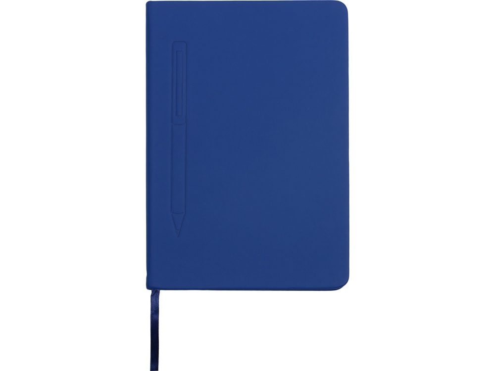 Блокнот формата А5 в твердой обложке со скруглёнными углами и блоком в линейку на 80 листов. Благодаря скрытой магнитной ленте на блокноте можно легко и надежно закрепить металлическую ручку. Зона с магнитом обозначена тиснением в форме ручки. -