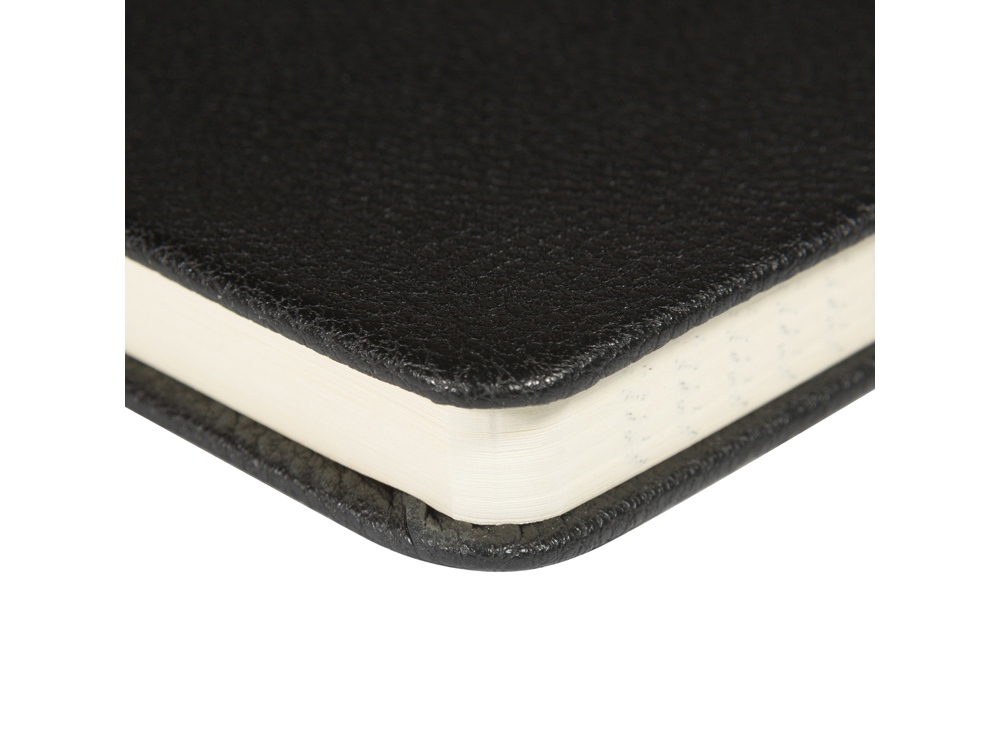 Твердая обложка с приятной фактурой, углами закругленной формы, книжный переплет и ляссе в цвет обложки наделяют блокнот практичностью.