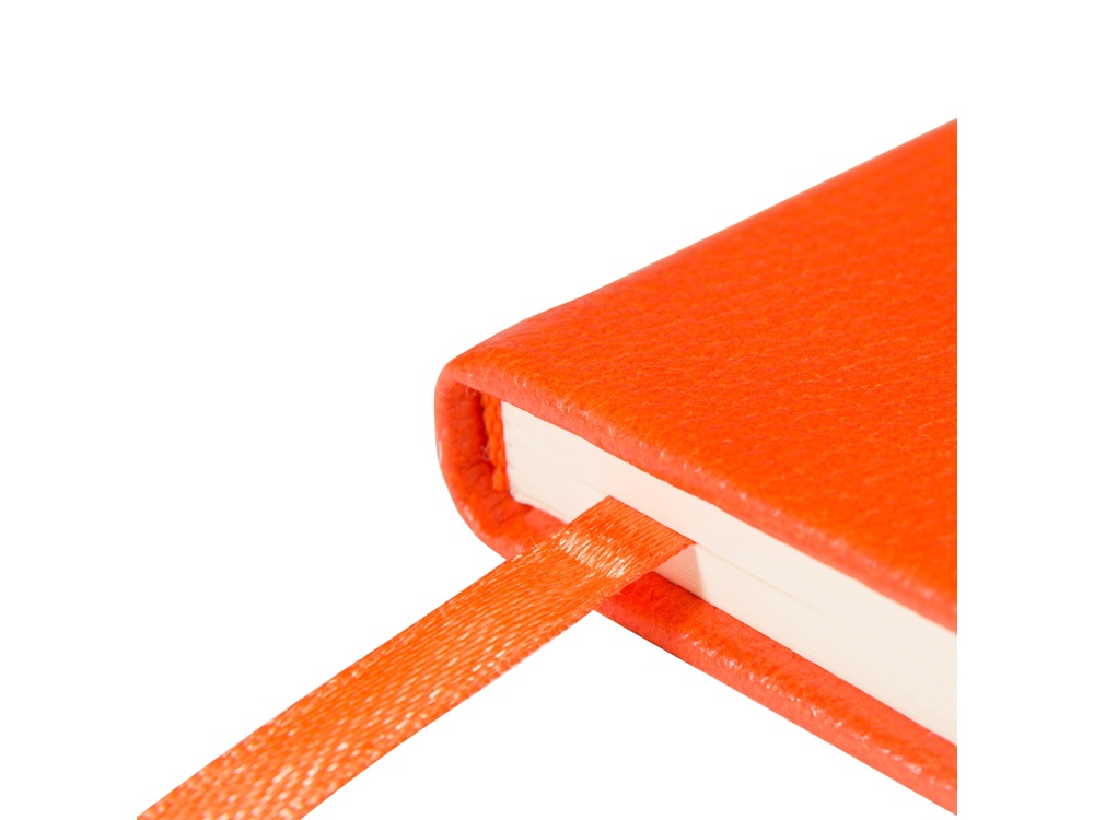Твердая обложка с приятной фактурой, углами закругленной формы, книжный переплет и ляссе в цвет обложки наделяют блокнот практичностью.