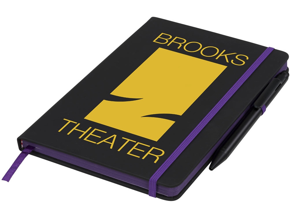 Блокнот Noir Edge среднего размера. Современный и стильный черный блокнот с мягкой на ощупь обложкой. Цветной край и цветные маркеры страниц, застежка-держатель для ручки. Предлагается с черной шариковой ручкой-стилусом. Блокнот содержит 96 листов линованной бумаги (70 г/м²) кремового цвета. ПУ. -