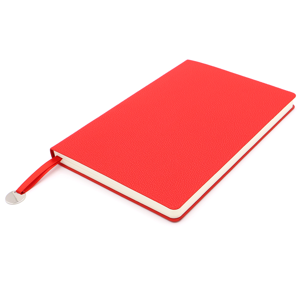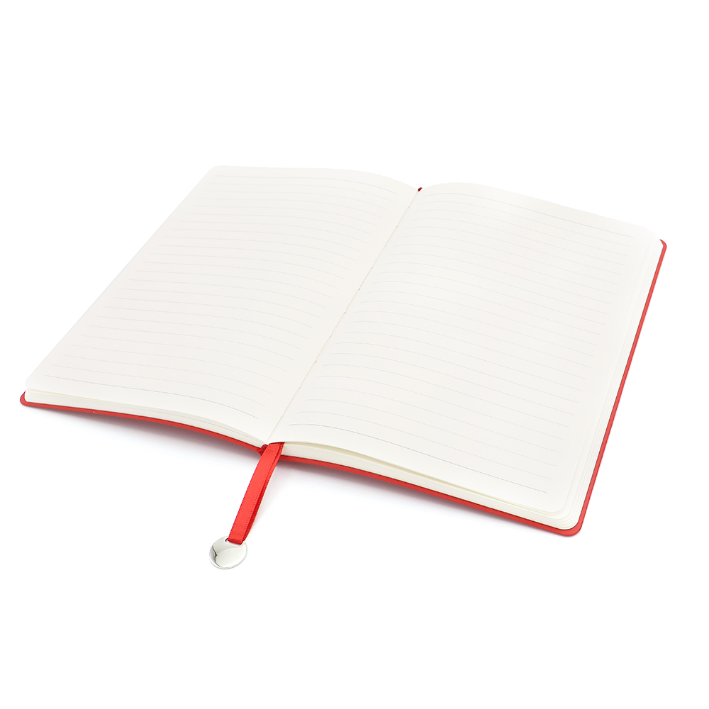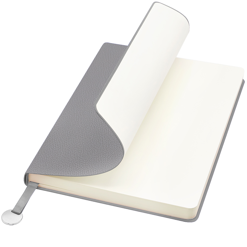 Блокнот формата А5 в гибкой обложке из искусственной кожи. Материал обложки — полиуретан. Ляссе и каптал блокнота соответствует цвету обложки. На конце ляссе присутствует металлический жетон, куда можно заказать гравировку логотипа организации. Размеры: 210*147*13 мм, 256 страниц / 128 листов, страницы в линейку, плотность бумаги — 70г/м2.- Виды нанесений: УФ-печать А2, Гравировка А2, Тиснение, Тиснение фольгой, УФ-Лак, УФ-Цвет+Лак