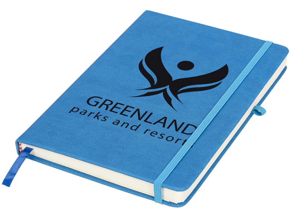 Блокнот Rivista среднего размера. Блокнот Rivista отличается стильным современным дизайном с высококачественной обложкой, идеально подходящей для нанесения логотипа и информации вашей компании. Предлагаются современные цвета. Также предусмотрена эластичная застежка, держатель для ручки, лента-закладка и внутренний кармашек на задней стороне обложки. Содержит 128 листов линованной бумаги (70 г/м²) кремового цвета. ПУ.